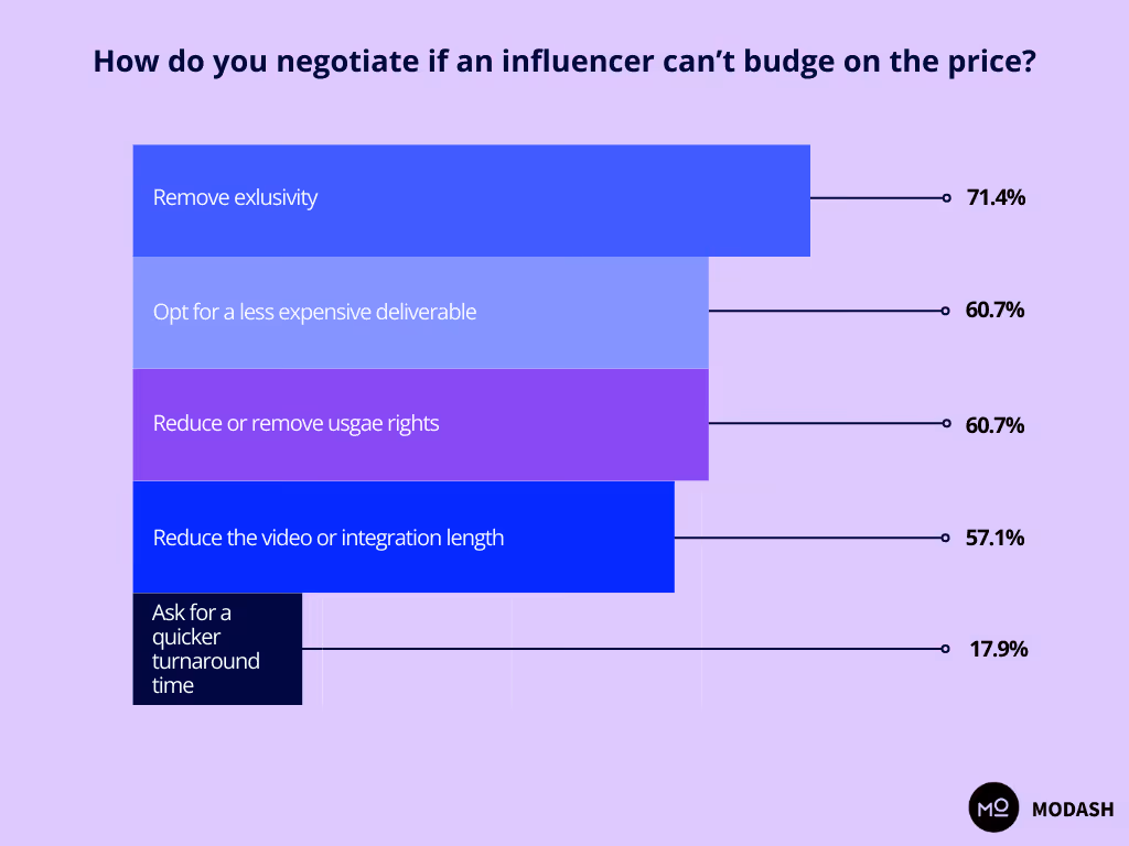 Indeed, three-quarters of respondents to our survey said influencers are generally receptive to renegotiating deliverables to reduce the overall price, while only one-third said this approach had put an influencer off working with their brand.