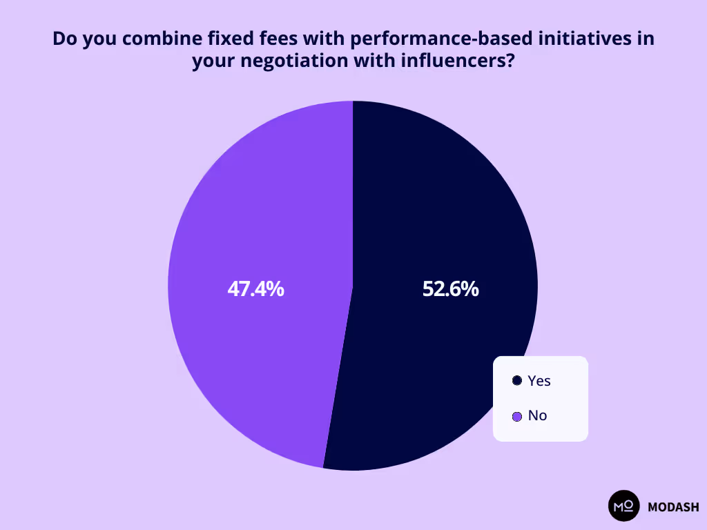 Indeed, just over half of respondents to our survey said they’ve negotiated with influencers by combining fixed fees with performance-based incentives – typically, a percentage of sales.