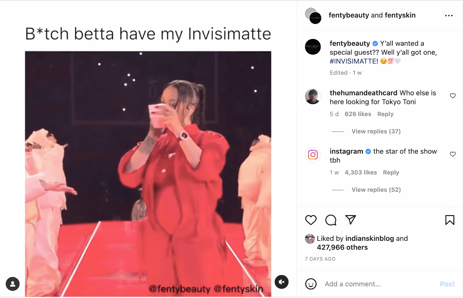 You think Rihanna performed at the Super Bowl for free just cuz ✨ tradition ✨? Nah. She did it for her brand, Fenty Beauty – which reportedly earned $5 million in media impact value in just 12 hours after the performance.