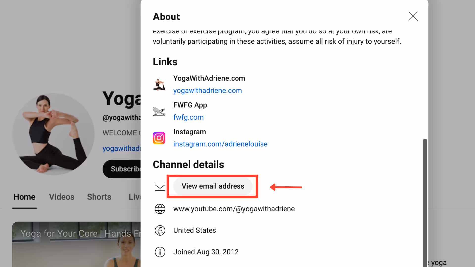 In TikTok, most influencers share their email info in the bio. You can find a YouTube channelâs email address in the âAboutâ section.