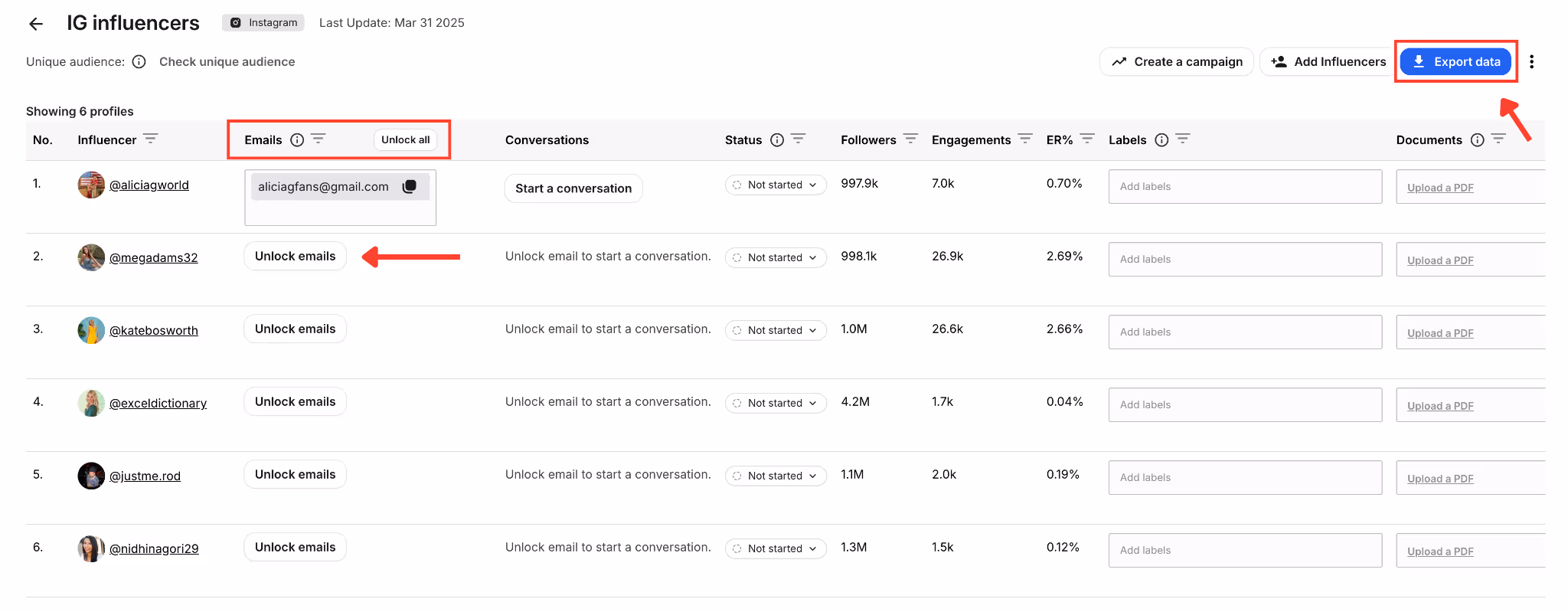 While the above methods are reliable, they arenât scalable at all. Combing through each influencerâs profile to hunt for their contact info and adding them to your spreadsheet is time-intensive. Plus, for YouTube in particular, the site will limit how many emails you can unlock per day per account.