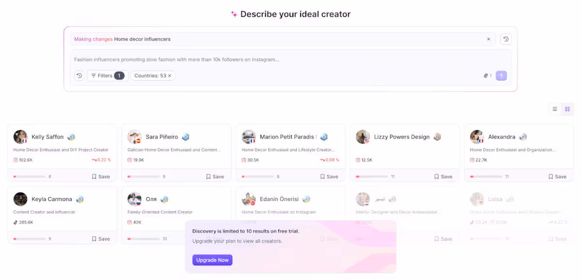 AI-powered influencer discovery means you can type the kind of content youâre looking for and a tool provides a list of creators who create similar posts. Such search capabilities can be extremely helpful in discovering niche, storyfit creators that might be off your radar otherwise.