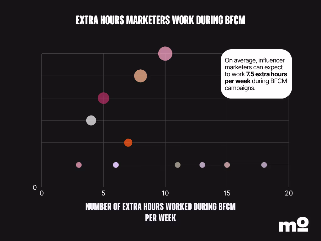 Last year, on average, influencer marketers worked an extra 7.5 hours per week during their BFCM campaigns.