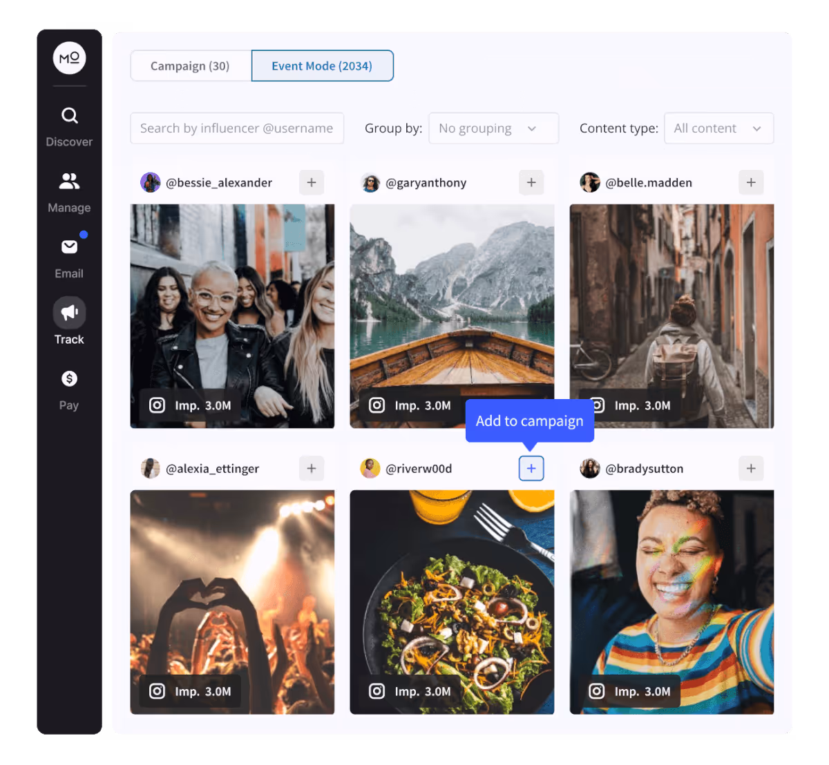 - Find and vet new influencers lightning quick with audience and performance metrics transparently shown under their profiles