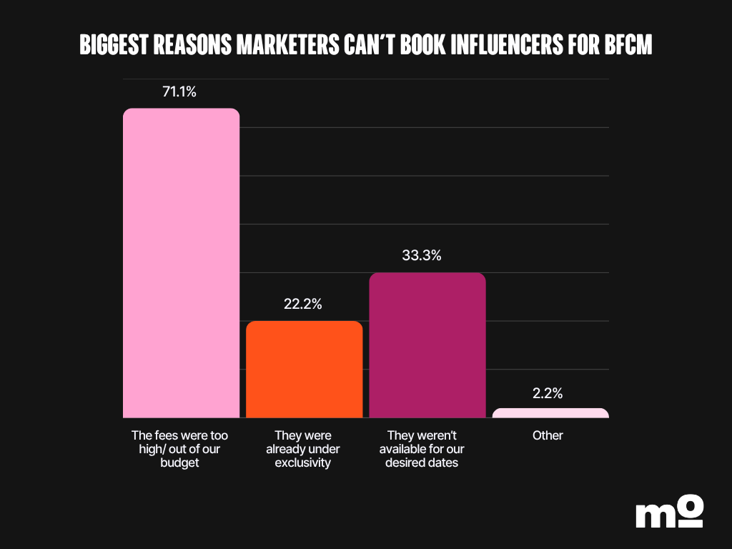 The numbers back it up, too: in our survey, 92.6% of marketers said they couldn’t book an influencer during BFCM despite really wanting to. Almost all marketers cited the reasons we discussed above.