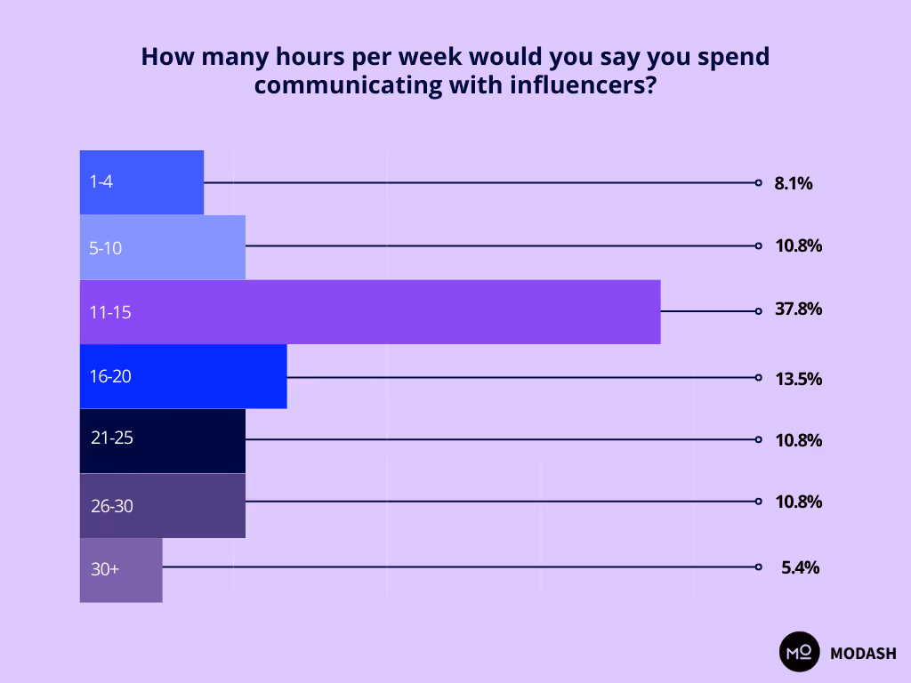 Influencer marketing is a relationship business, so it makes sense that marketers spend 16+ hours per week on average communicating with influencers.
