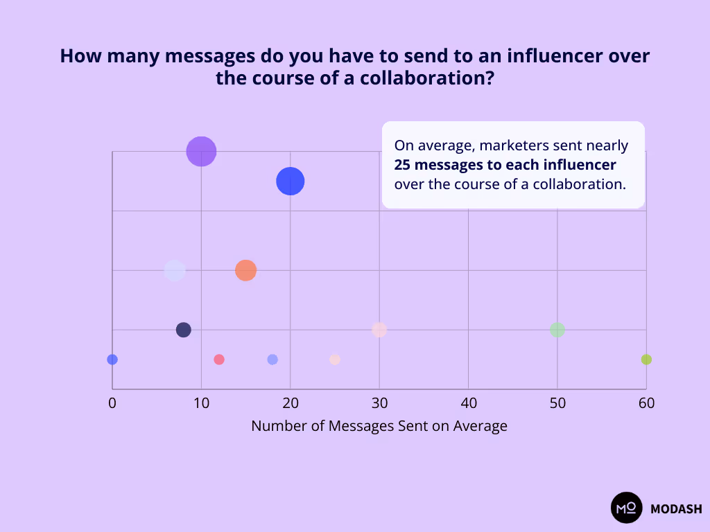 Let’s break that down even further. On average, marketers are sending each individual influencer 25 messages over the course of their collaboration together.
