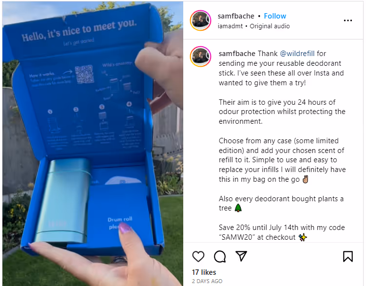 Deodorant brand Wild are using an effective combo of seeding plus commissions.