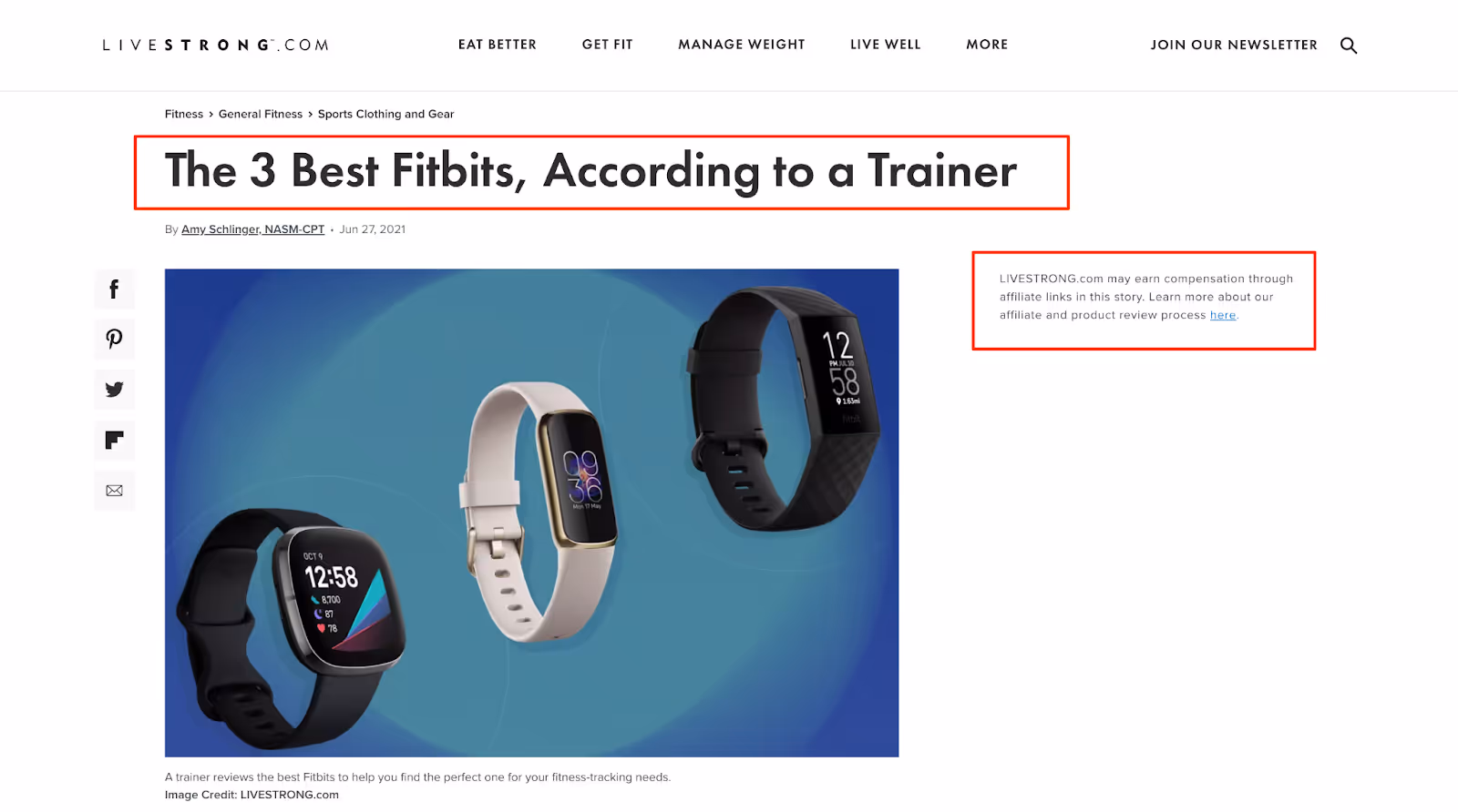 Fitbit frequently engages in guest posting on high-DA (domain authority) health and fitness websites like LiveStrong and Healthline. Most of these articles cover related topics such as sleep optimization, exercise science, and overall wellness, but Fitbit also takes advantage of opportunities to create more sales-focused content.