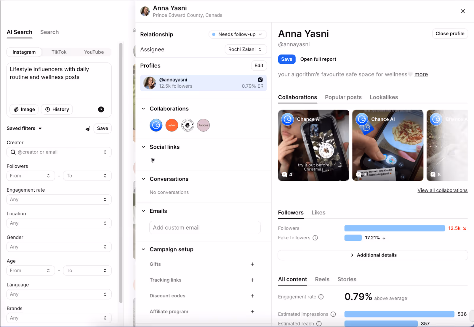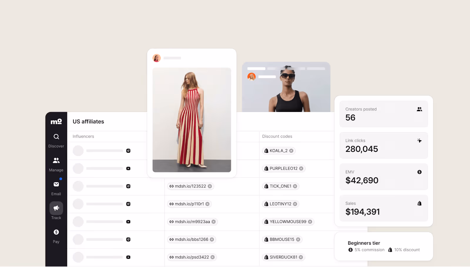 This, in addition to the advanced Shopify integration that allows you to create links/codes, customize commissions, and pay without hassle. Modash fits your needs perfectly right now while adapting effortlessly as your business expands.