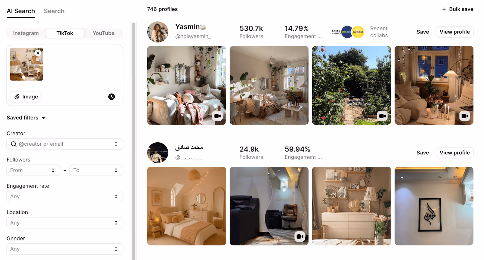 GoAffProâs marketplace isnât just scarce, it also doesnât have Modashâs advanced capabilities like AI influencer discovery. You can find an influencer using natural language search and image search.