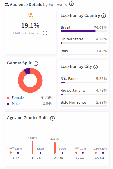 You search for a profile (Instagram, YouTube, or TikTok), and click once to open up a profile summary. Thatâs it. Hereâs an example using Mari Maria, a Brazilian Instagram account with 20M+ followers.