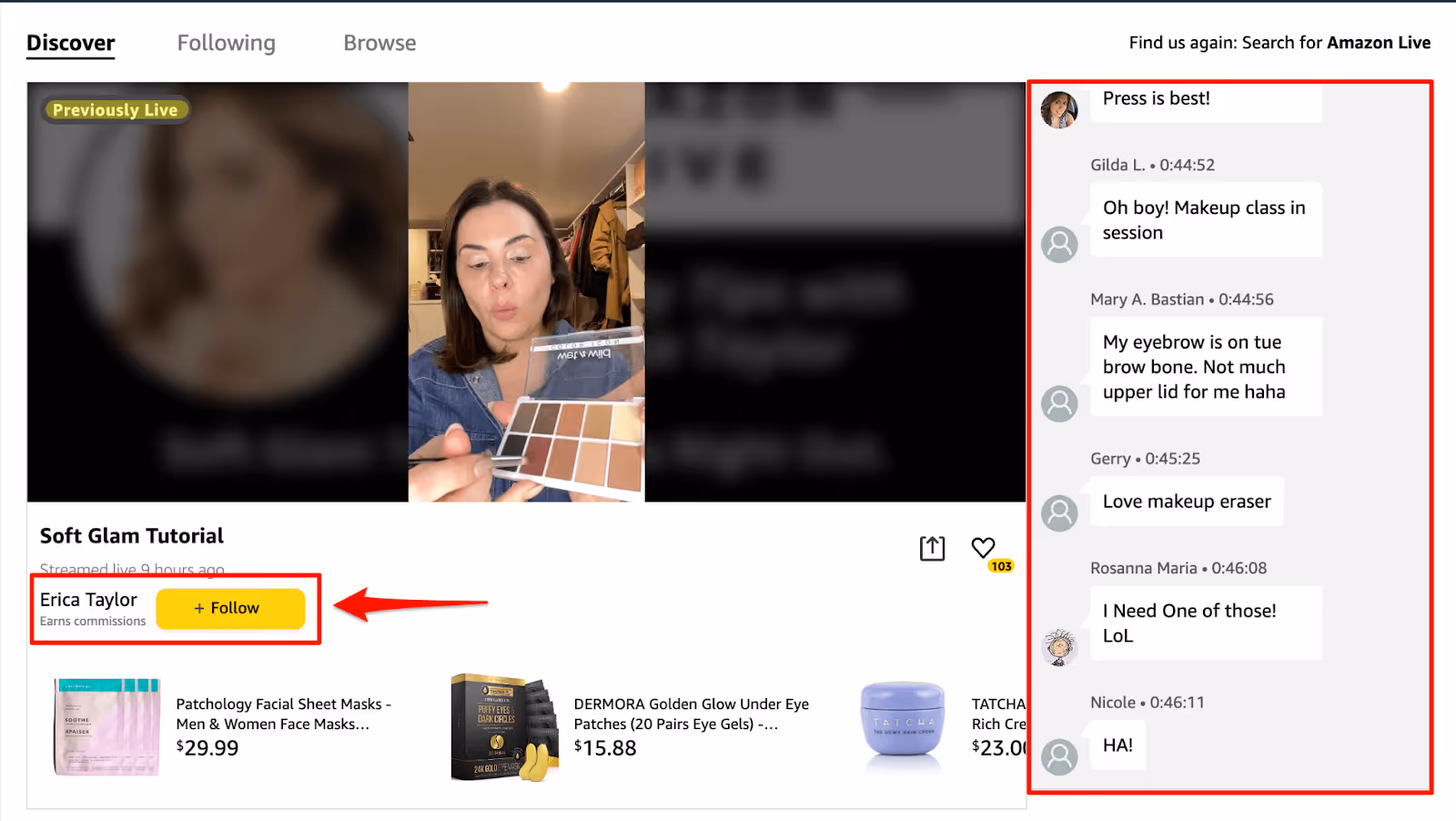 1. Amazon Live: here you can find Amazon influencers doing live streams showing their favorite Amazon products. People watching can comment too.