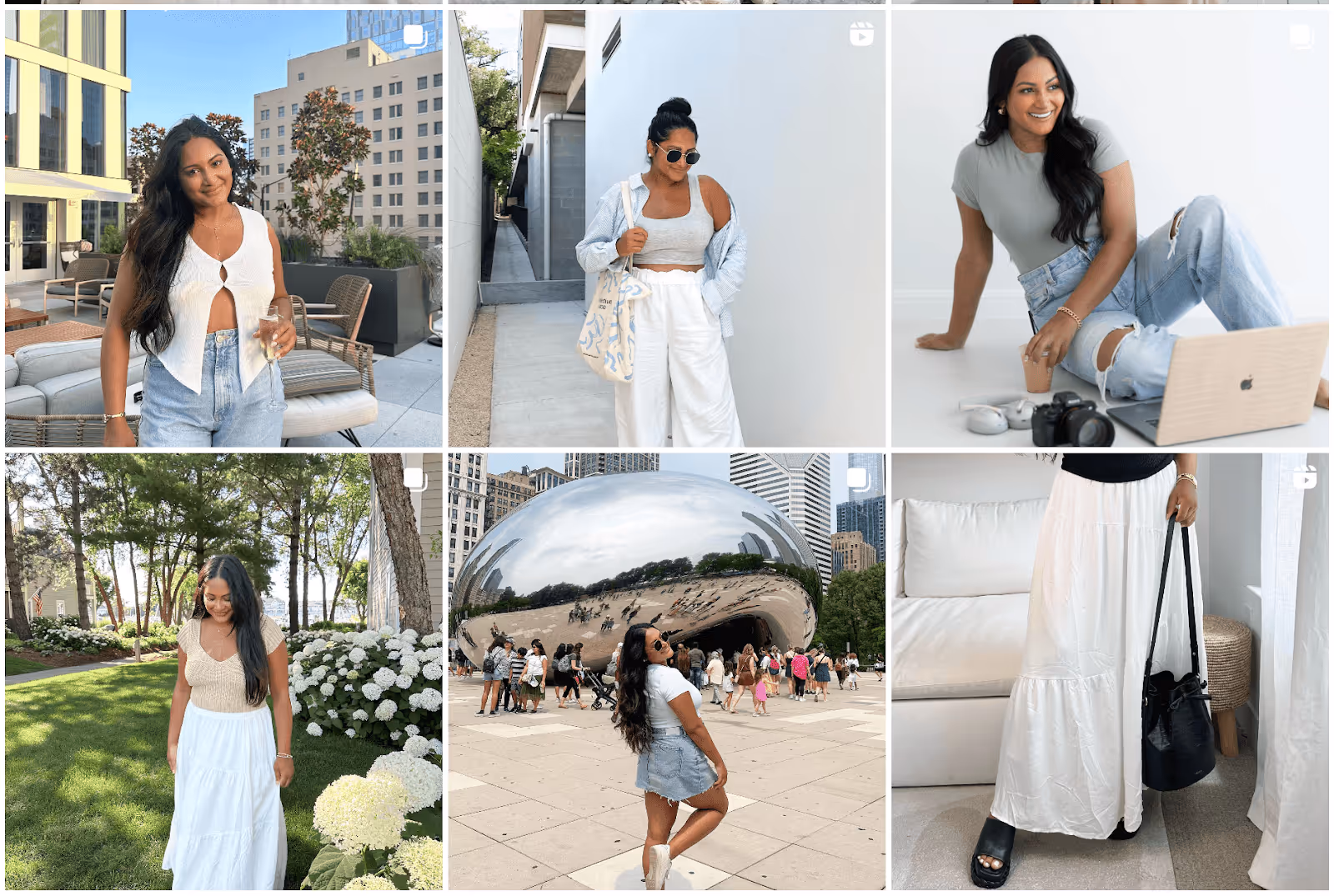 It’s perfect for clothing brands that sell affordable items of high quality (same as pricey luxurious brands) or loungewear companies selling comfy clothes. But for brands selling chic, minimalist, and seasonal clothing, Sonali Prabhu’s feed might be better-fitted.