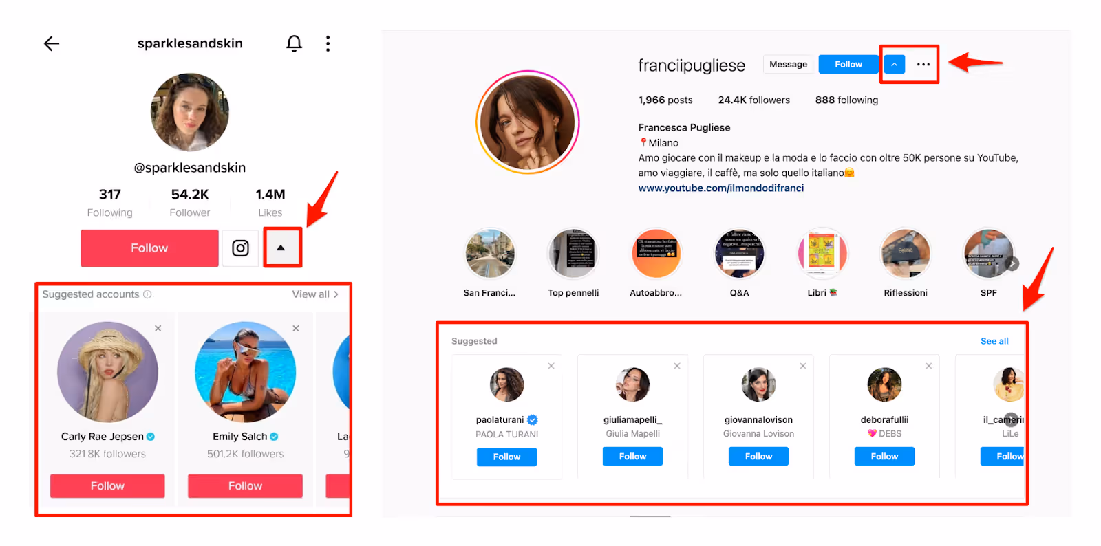Found a micro-influencer you like? Find similar ones using the âdownâ arrow on Instagram and TikTok: