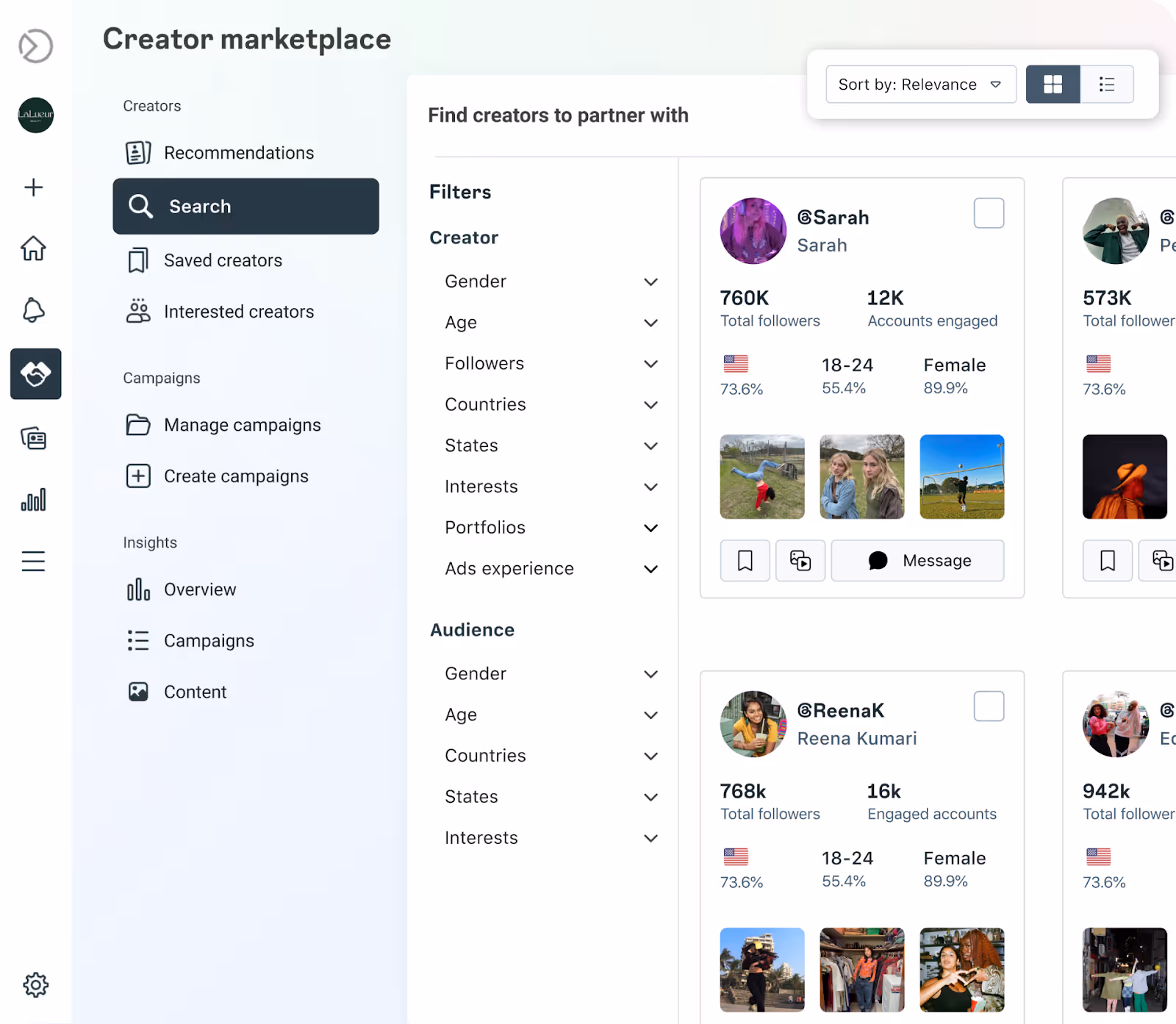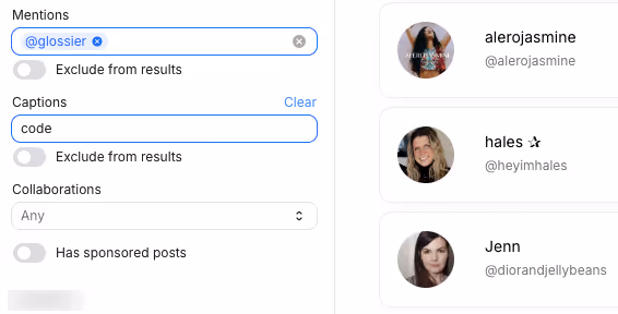 Or you can use our AI influencer search feature to find creators based on whatâs inside the content (images and videos), not just what the caption says.