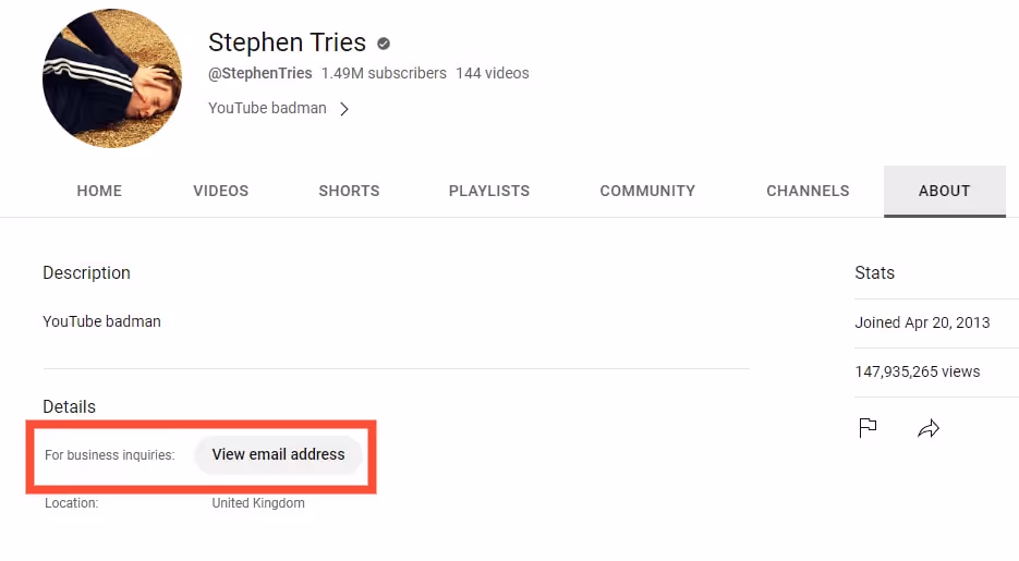 If their email address isnât listed on their YouTube channel, that doesnât necessarily mean it isnât available elsewhere. Try finding their Instagram email. See if they have a website with a contact form. Try DMing on Linkedin. Thereâs lots of other contact methods you can try on other platforms.