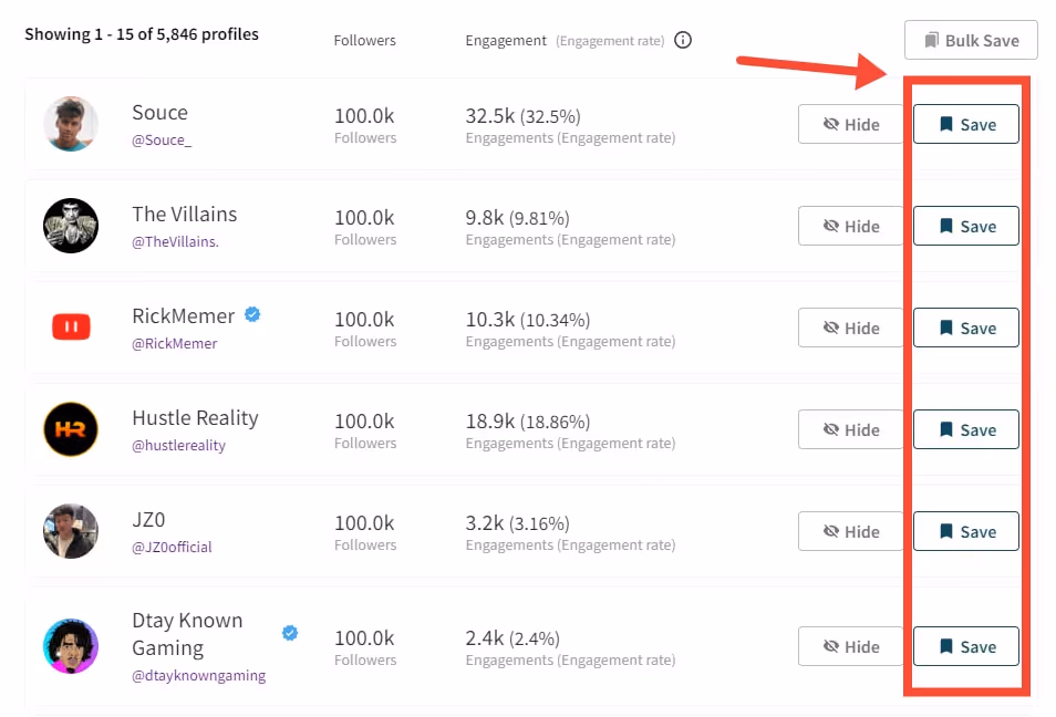 Filters are available for both the influencer, and their audience. Iâd encourage you to create an account and give it a whirl for yourself, but hereâs a quick example. Here, Iâve added filters for the subscriber range Iâm looking for, and a minimum engagement rate. Iâm also telling the tool to only show me creators who have an email address available.