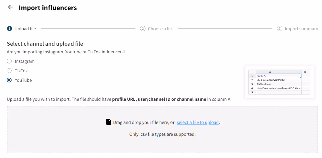 Lastly, you can also simply import a .csv list if you already have one prepared.