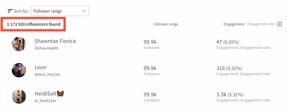 This technique is known as layering. Apply one filter, check your results, then apply more one-by-one if you still have enough profiles. If you start off by being too specific, you may accidentally exclude creators that could be perfect for your brand. Layering prevents that.
