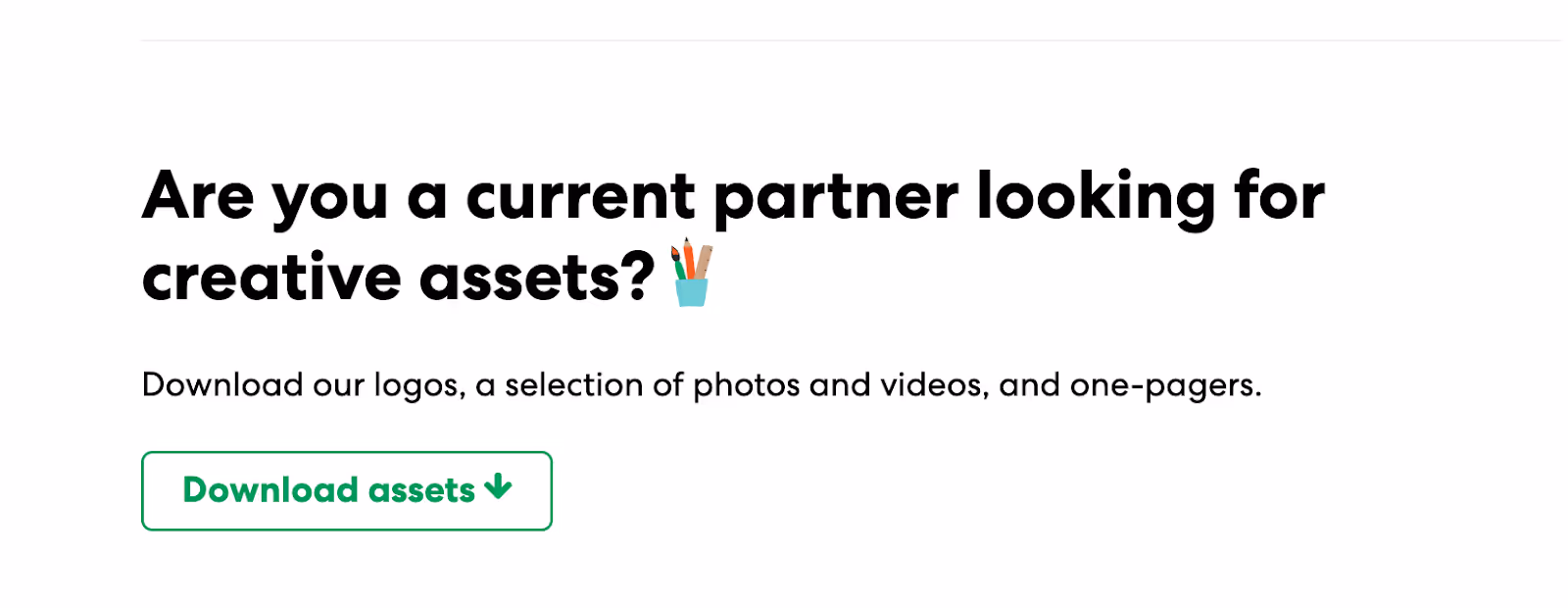 KiwiCo’s ambassador landing page has a section for current brand ambassadors and influencers to download logos, one-pagers, and other creative assets.