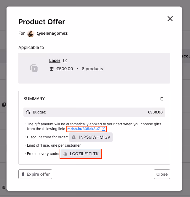 You can choose which subset of affiliates youâd like to gift to and also customize the product catalog they see. The order is fulfilled automatically if you integrate your Shopify store. Then you can track the clicks and sales that followed.