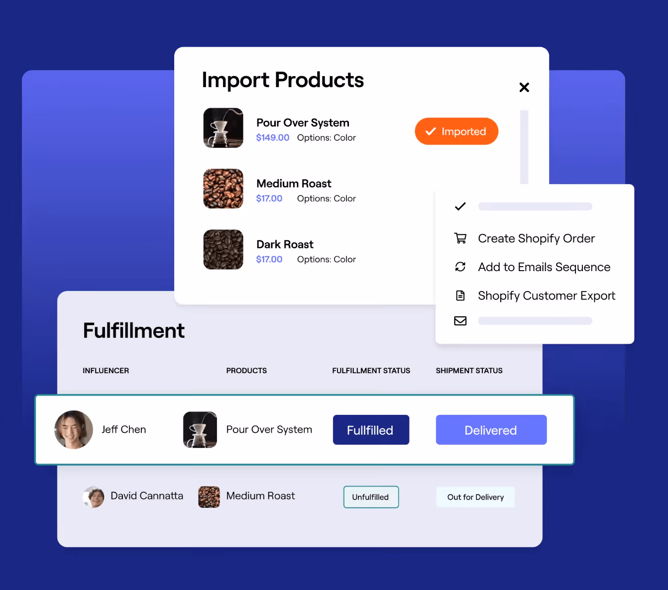 - Integrate your Shopify store: you can even automate the ordering process â influencers can choose which product(s) they want from your catalog and order it themselves. And donât worry, you can control which products or collections influencers can see & order.