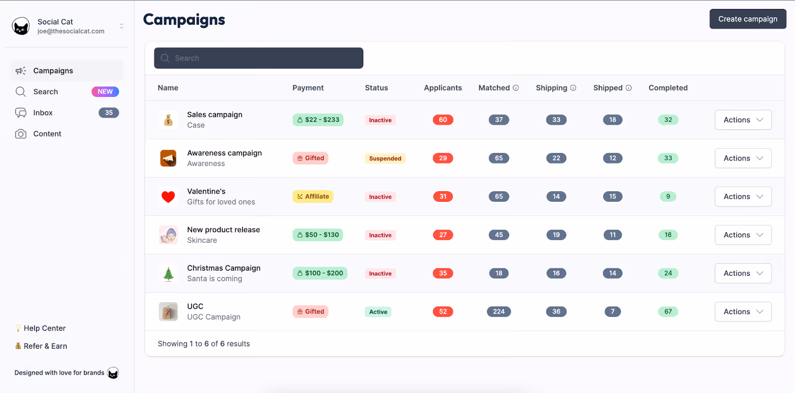 Other key features: You can manage paid and affiliate campaigns using The Social Cat, too, but influencers must either be a part of their marketplace or be invited to join. While it's comforting to think only vetted influencers make the cut in a marketplace, remember a few rotten apples always join the herd. Do your due diligence before partnering with any creator.