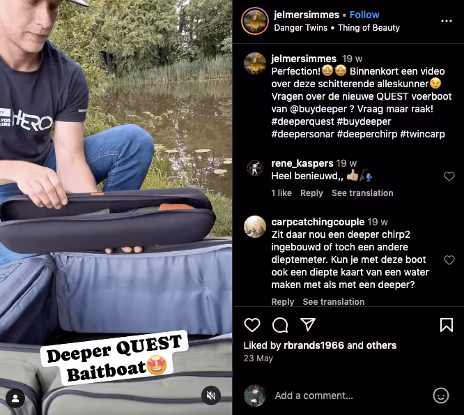 For instance, influencer marketing can help you promote a product launch, just like in this collaboration between angling technology brand Deeper Sonar and Dutch nano influencer Jelmer Simmes: