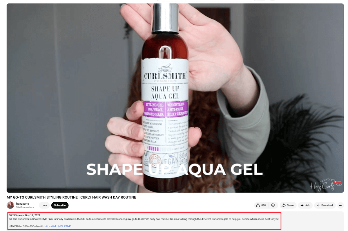 On YouTube, the creator collaborations primarily focus on educational content (like which Curlsmith gel to use) and detailed reviews of new product lines.
