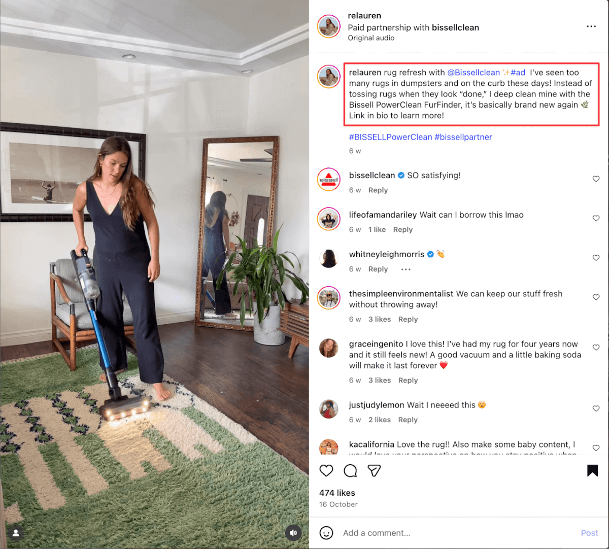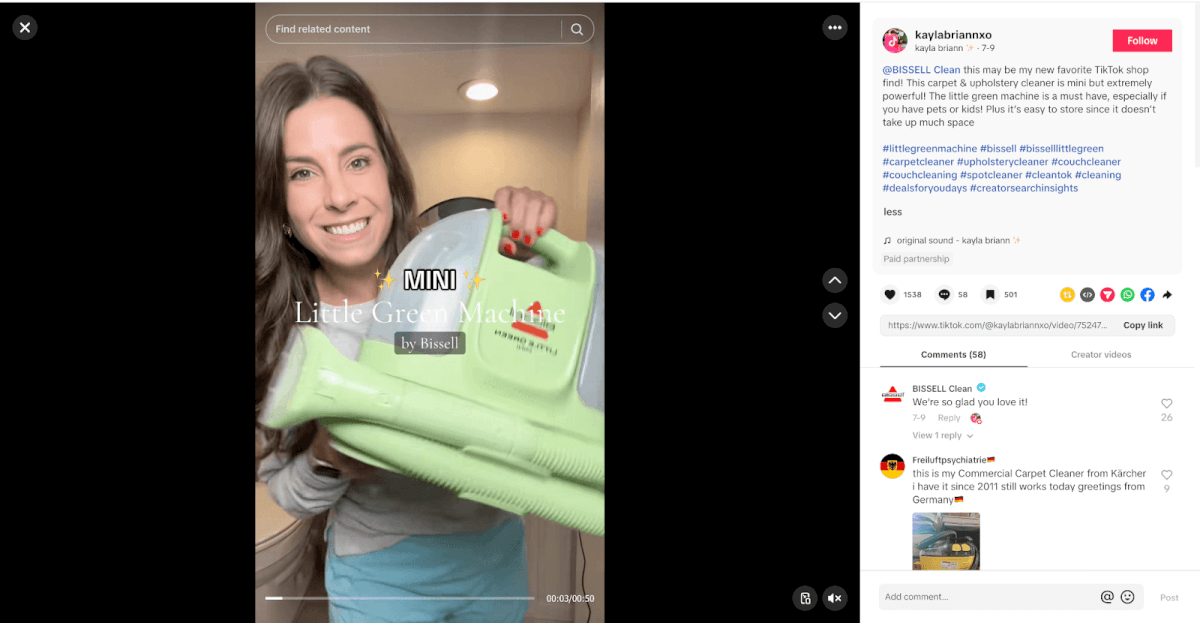 While their viral mini green machine is all over Instagram and TikTok, Bissell also partners with storyfit creators who can provide unique angles to market their products.