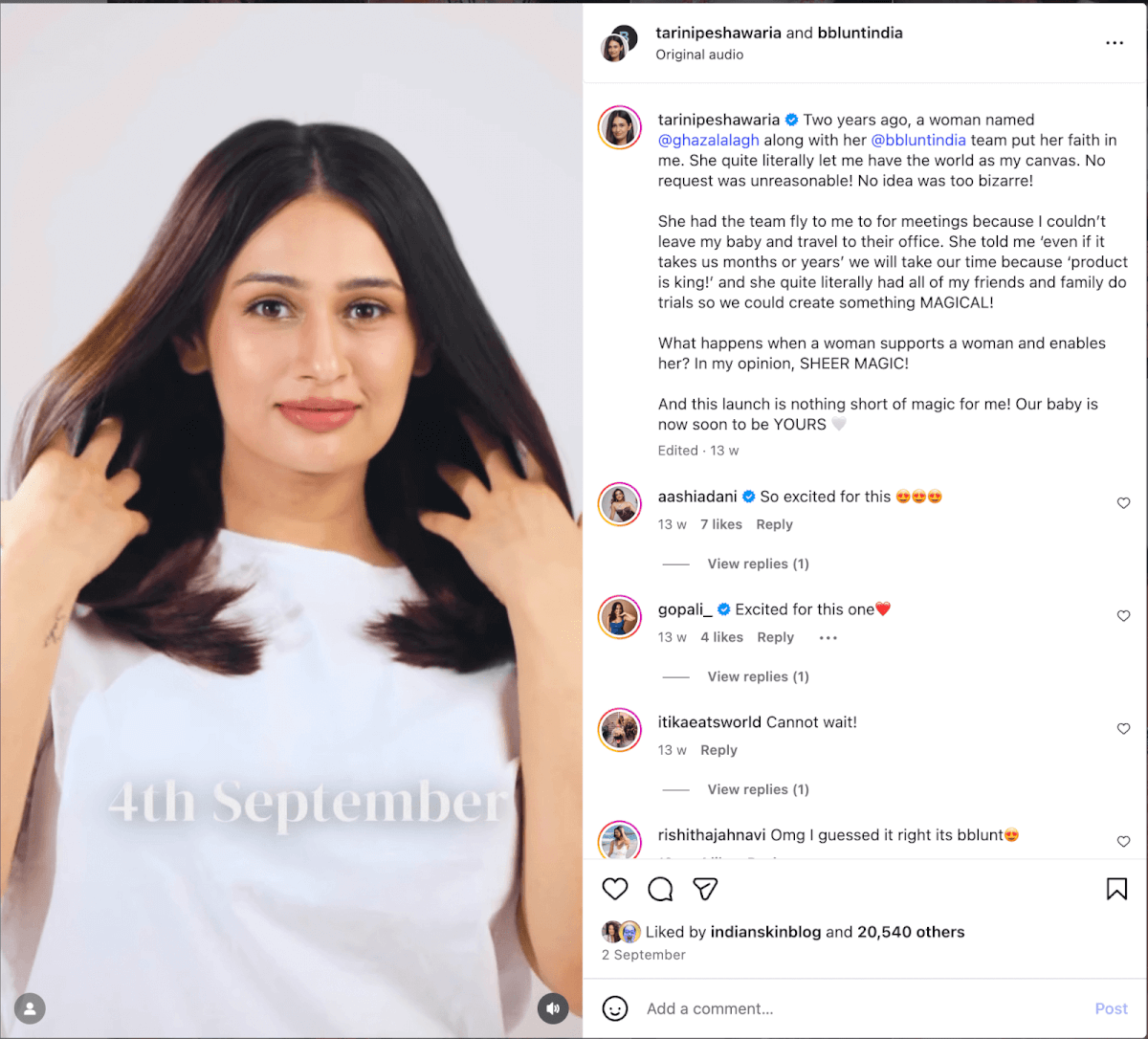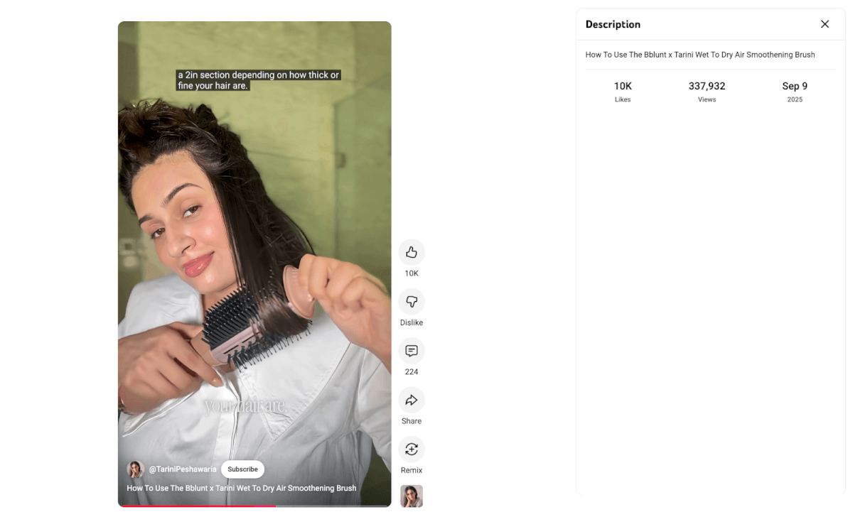 Bblunt is a haircare company that did a unique type of collaboration with creator Tarini Peshawaria: co-creating a new product, the wet-to-dry air smoothing brush.