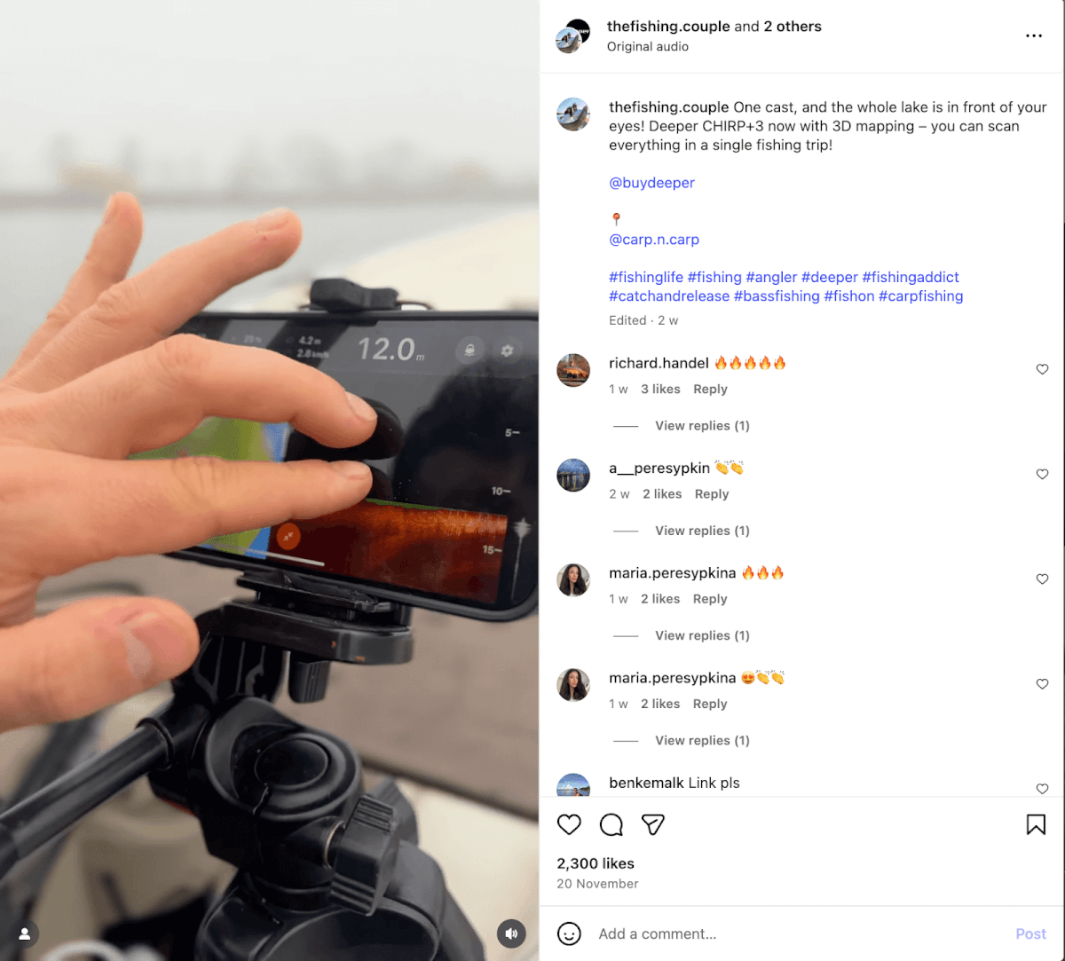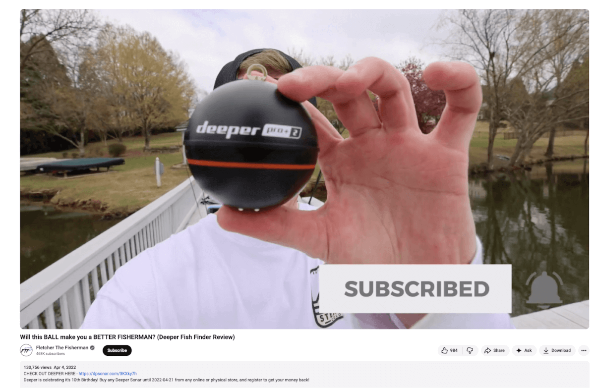 Deeper Sonar is a market leader in the angling world. They sell portable sonars, fishing accessories, and more. They have one of the largest ambassador programs with 7k+ ambassadors spread over 30 countries. đ¤Ż