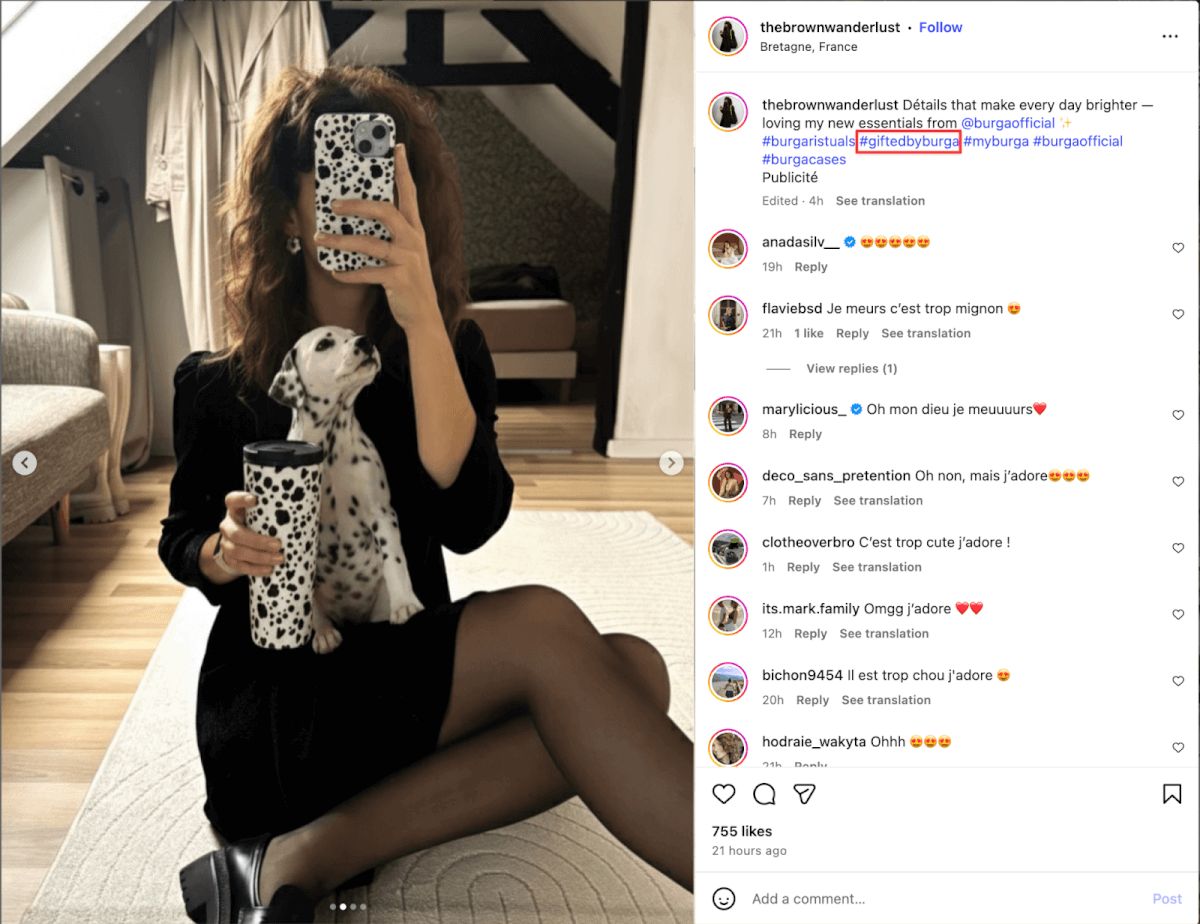 Key takeaway: choose creators who would genuinely love your product to make your influencer gifting efforts more successful. The more they like the items you sent, the more likely they are to post about them. To scale the gifting program, introduce unique UTM links or codes.