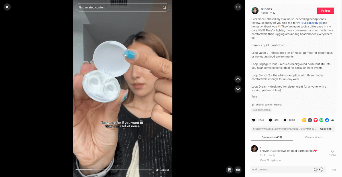 Loop Earplugs partners with creators of various kinds (overstimulated moms, neurodivergent people, concert goers) to promote their diverse products.
