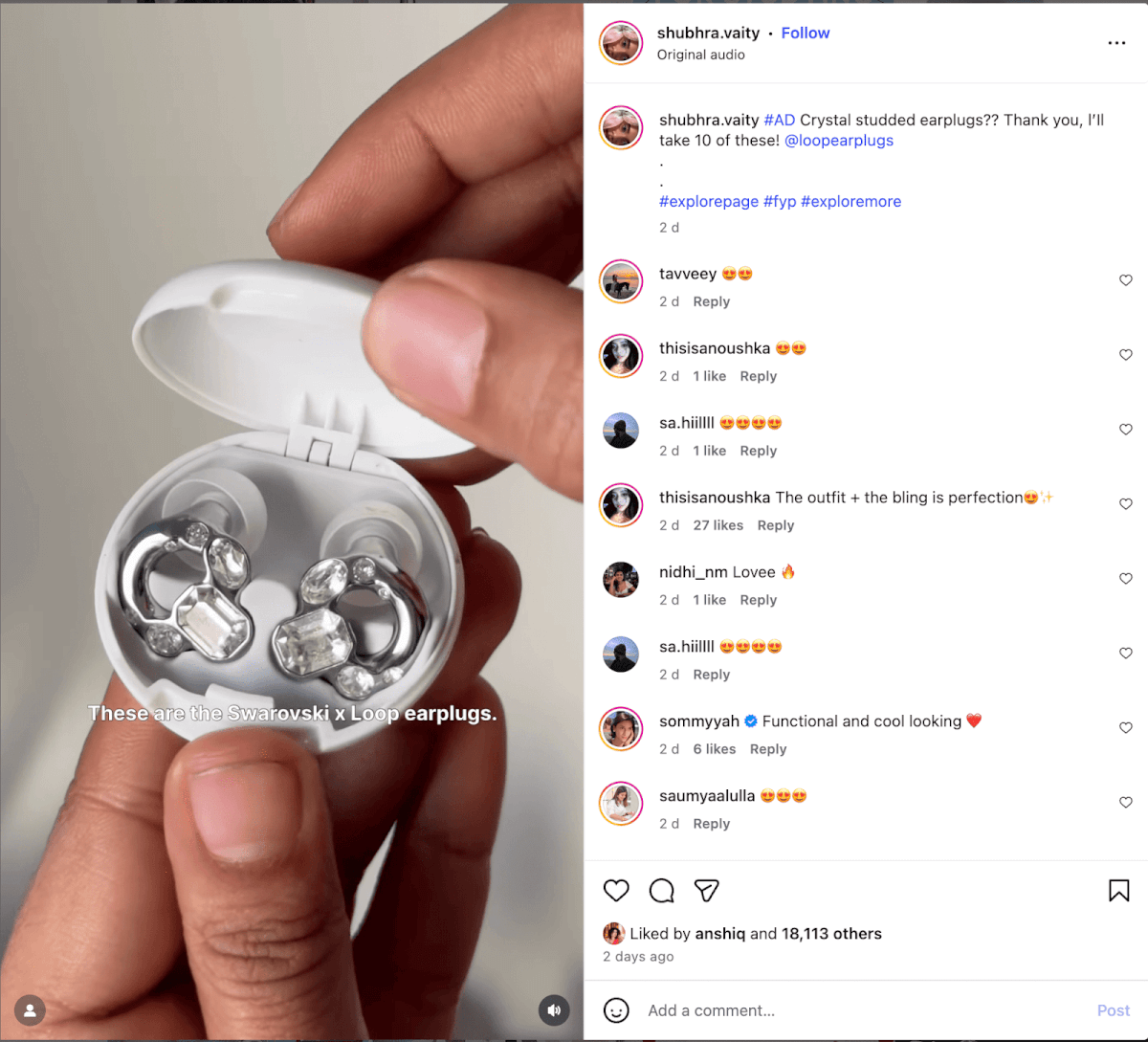 The coolest one of all was the promotion of their new Swarovski âł Loop limited edition earplugs, though. Pairing it with a creator going to a concert was justâŚchefâs kiss. đ¤