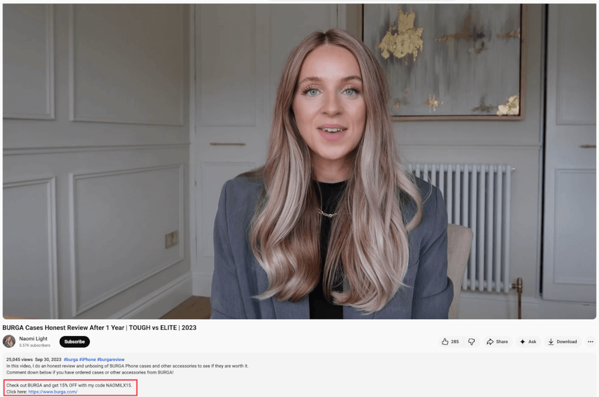 BURGA has a very strong brand awareness strategy for its influencer marketing efforts. They moved away from discount codes to avoid brand devaluation. Coupon code leaks also often led to unreliable performance data.