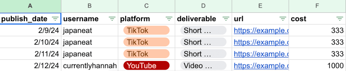 It doesn't automatically pull in live influencer posts, but it provides a good structure for tracking influencer content (plus it wonât cost you a cent).