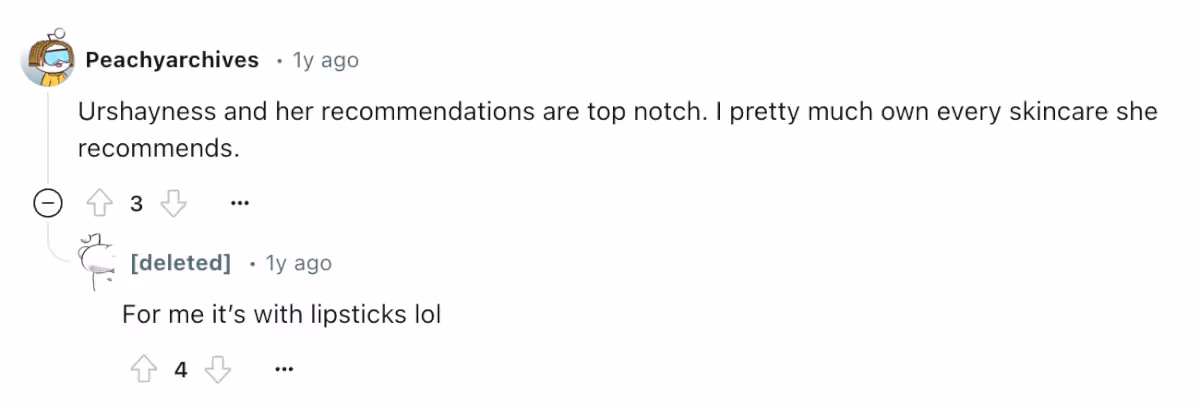 Continuing with an example, I noticed a Reddit user sharing how theyâd buy anything beauty creator Shalini Kutti recommends â even if itâs a luxury item. Thatâs an example of a creator having a reliable reputation among their audience â one thatâs built by providing valuable content for years.