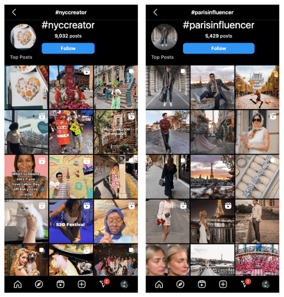 All social platforms have built-in search tools, which can help you track down relevant influencers. For instance, you can search on Instagram using location-related hashtags like #nyccreator or #parisinfluencer.