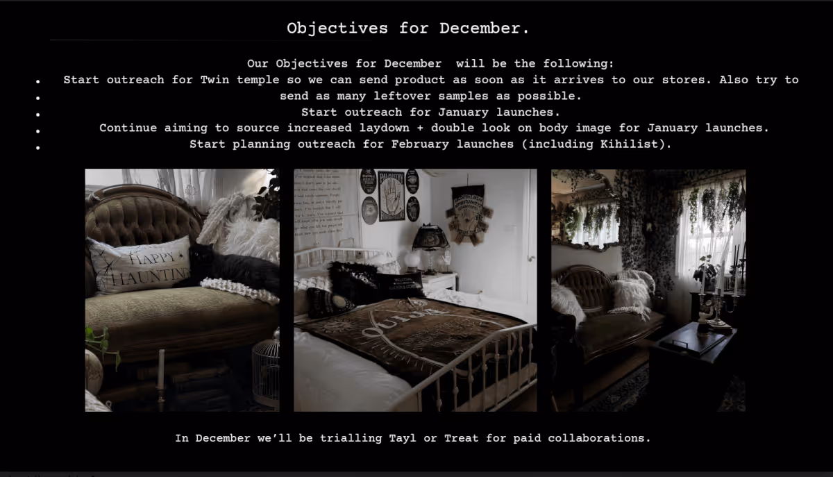 Which type of campaign(s) did Killstar run: Killstar ran influencer gifting campaigns (with an occasional paid campaign here and there). This means their primary influencer marketing cost included only the COGS with a small amount of influencer fees added (for those creators who needed a fixed payment, too).