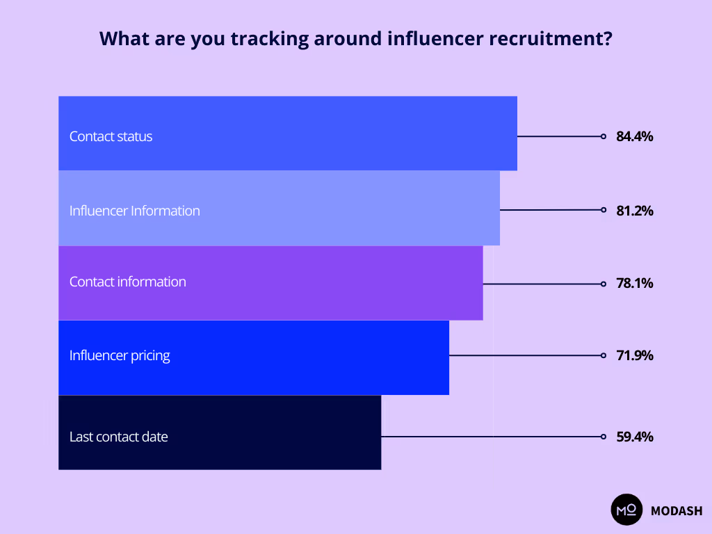 Over 80% of influencer marketers use spreadsheets to track influencer recruitment details. These include everything from an influencerâs email address and contact status to negotiation updates and more.
