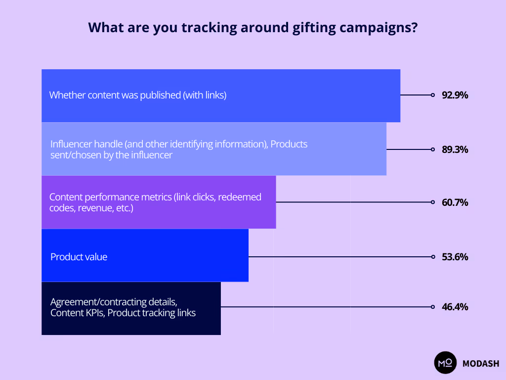 Influencer marketers often use a dedicated sheet for influencer gifting campaigns â 71% of respondents to our survey track these separately from their paid campaigns.
