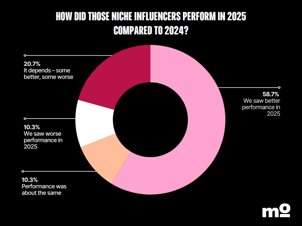 Marketers are seeing this on the ground: nearly 60% of those we surveyed said niche influencers performed better in 2025 compared to 2024.