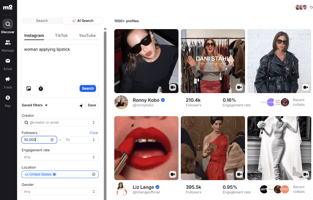 And it makes sense: finding relevant influencers can be a huge time suck. Thanks to AI-powered influencer search tools like Modash, you can actually use semantic or visual search to find ultra-relevant creators. Layer filters on top to be even more specific.