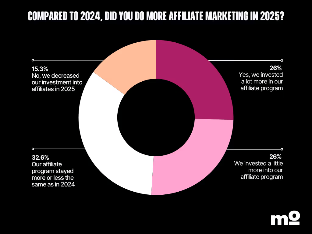 Influencer marketing and affiliate marketing used to be treated as separate disciplines. But today, affiliate marketing is becoming a subset of creator marketing. Over half of the marketers we surveyed said they invested more in their affiliate program in 2025 than they did in 2024.