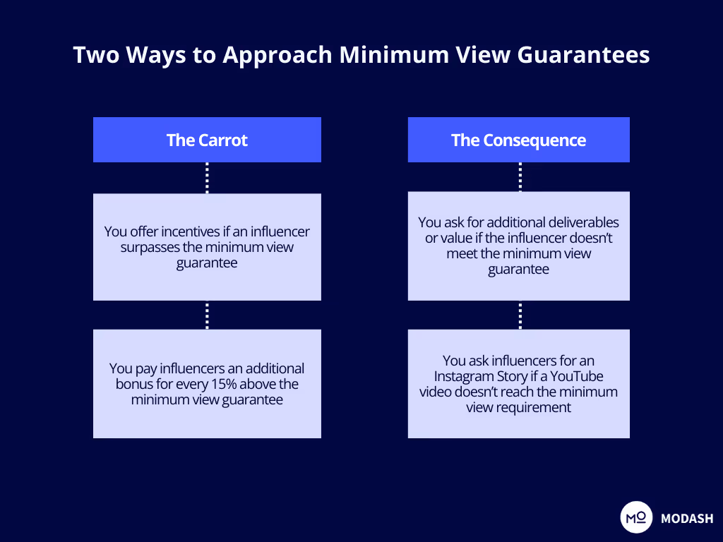 🥕 The carrot, which incentivizes the influencer to hit your view target by offering additional rewards like a higher flat fee, increased commissions, or a long-term partnership.