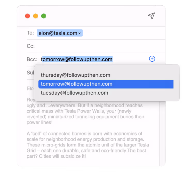 - Set automated reminders. Schedule a reminder email by adding a time or date to the BCC field in the email youâre about to send (e.g., âjan1st@followupthen.comâ). When the reminder hits your inbox, you know itâs time to follow up with the influencer in question.