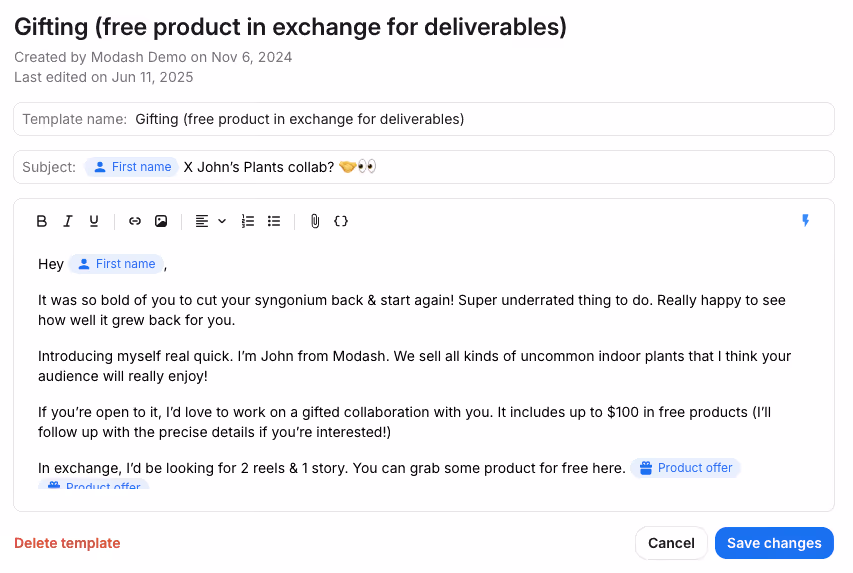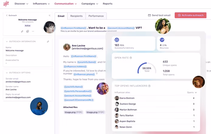 - Personalize your outreach at scale. Create templates that read like custom messages to individual influencers by adding variables like names and topics. Mistake auto-detection stops you from sending campaigns with missing variables.Â