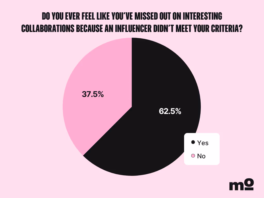 That said, it might be worth checking if your brand standards are too stringent or if you can be a little more flexible. I say this because an overwhelming majority of marketers in our survey felt they missed out on interesting collaborations because an influencer didn’t meet their criteria.
